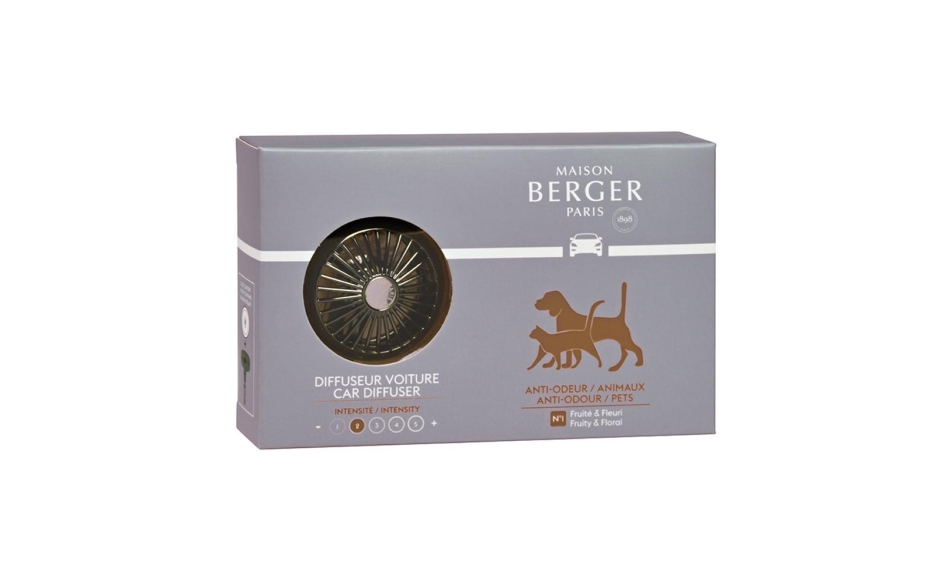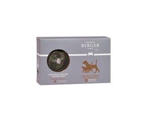 Diffusore auto speciale per odori degli animali, neutralizza i cattivi odori, diffondendo un lieve profumo fruttato e fiorito, con un iniziale aroma di bergamotto, mela e ribes, un cuore di fresia, mughetto e viola ed una coda di sandalo, cedro e muschio.