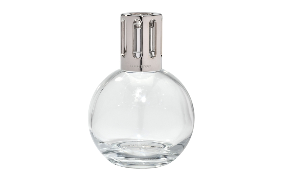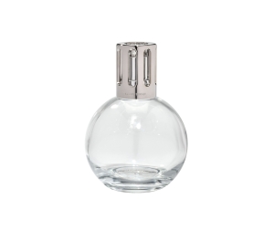 Lampada in vetro trasparente corredata da due flaconi di parfum de maison: Neutre e Caresse de Coton.
