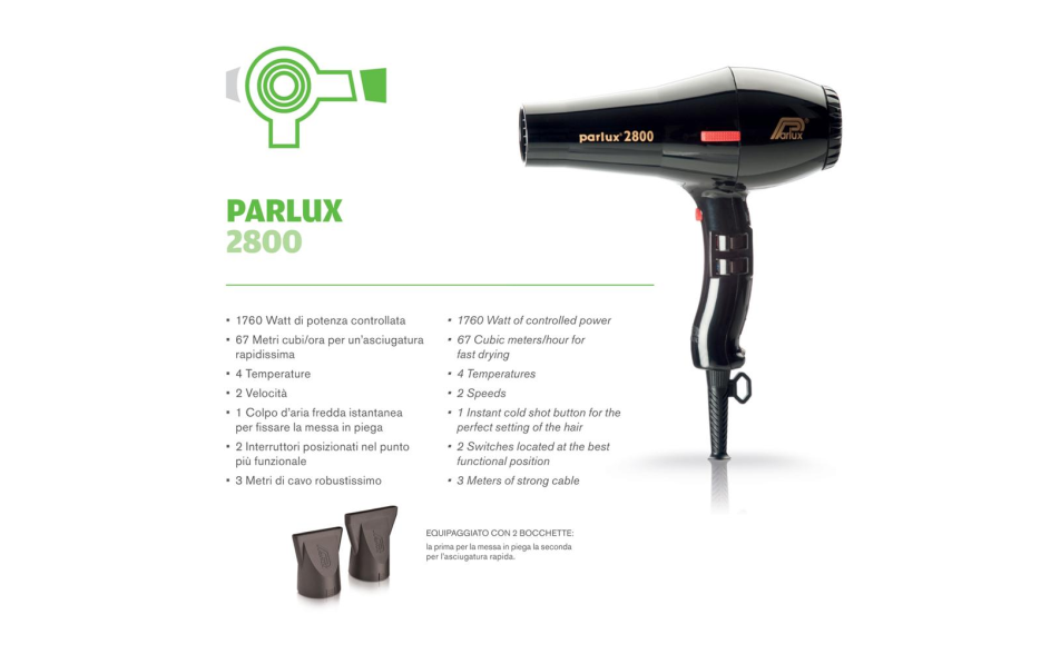 Parlux Phon Superturbo 2800 è un asciugacapelli professionale che possiede le già consolidate caratteristiche richieste dai parrucchieri, per quanto riguarda durata, potenza, maneggevolezza e robustezza.